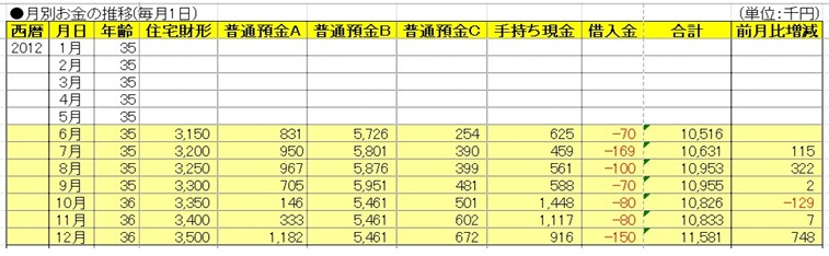 住宅財形6,000千円+預金7,000千円